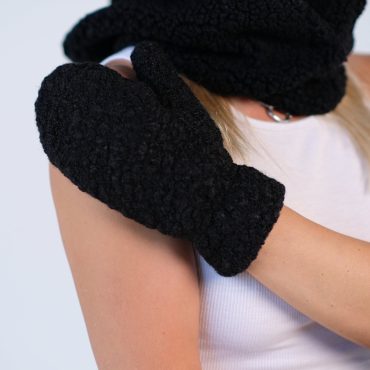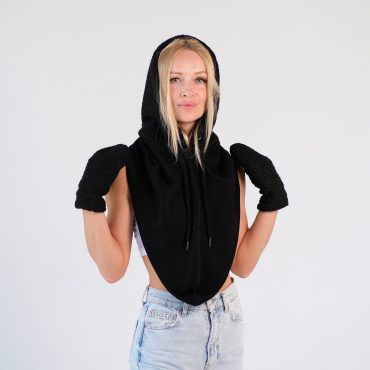 Hooded Scarf Mittens Set Women Sherpa Balaclava Fleece