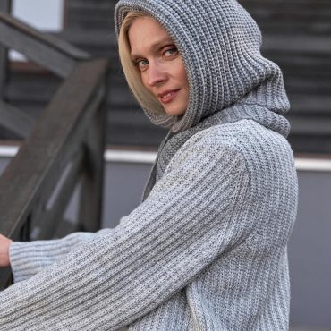 Gray Hooded Scarf Womens Snood Knitted