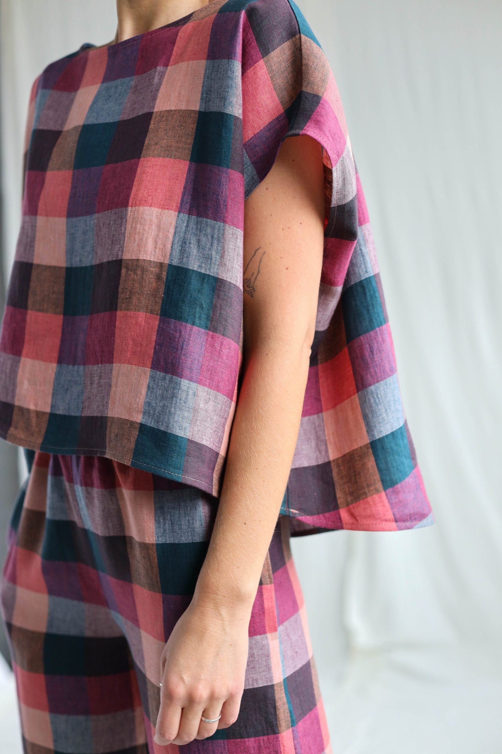 Checkered Linen Oversized Top Offon Clothing