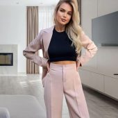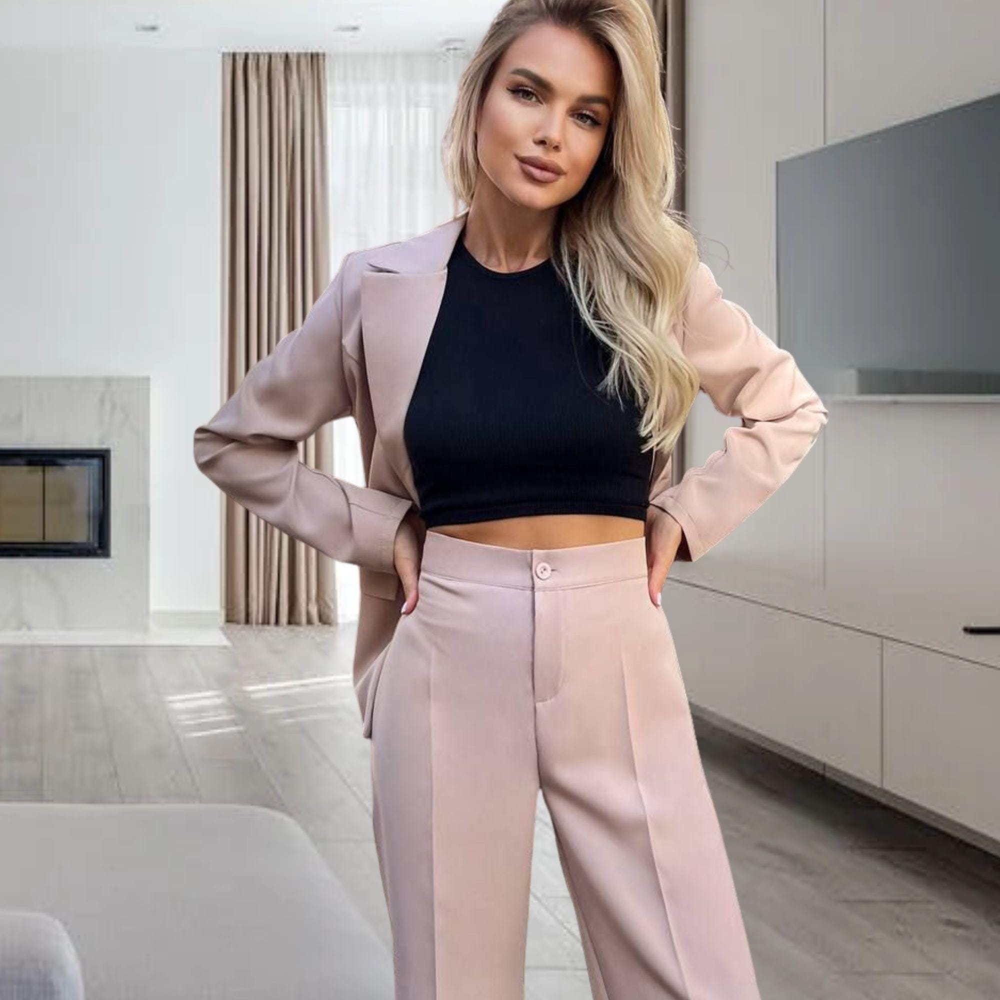 Elegant Beige Pantsuit: Women’s Business Office Twopiece Set
