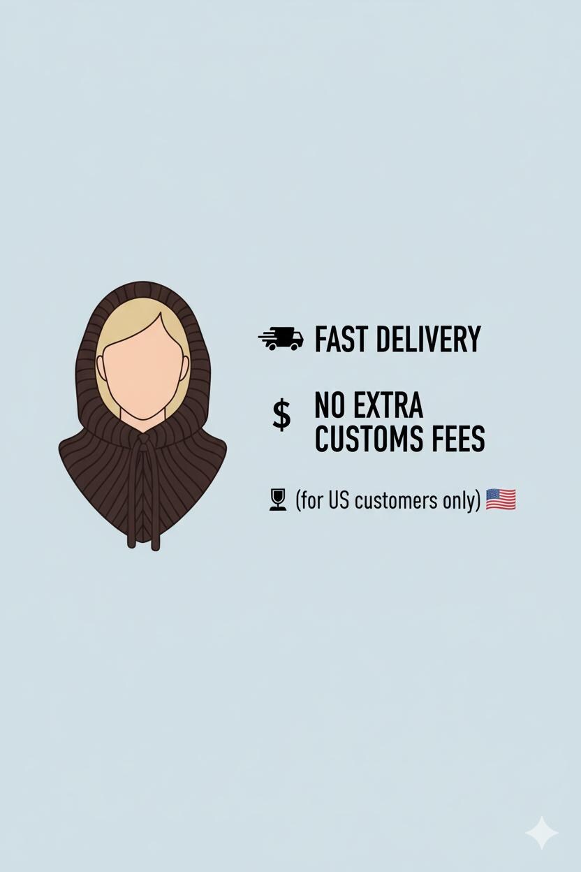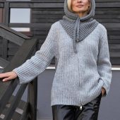 The multifunctional winter accessory is made of semi-woolen yarn.