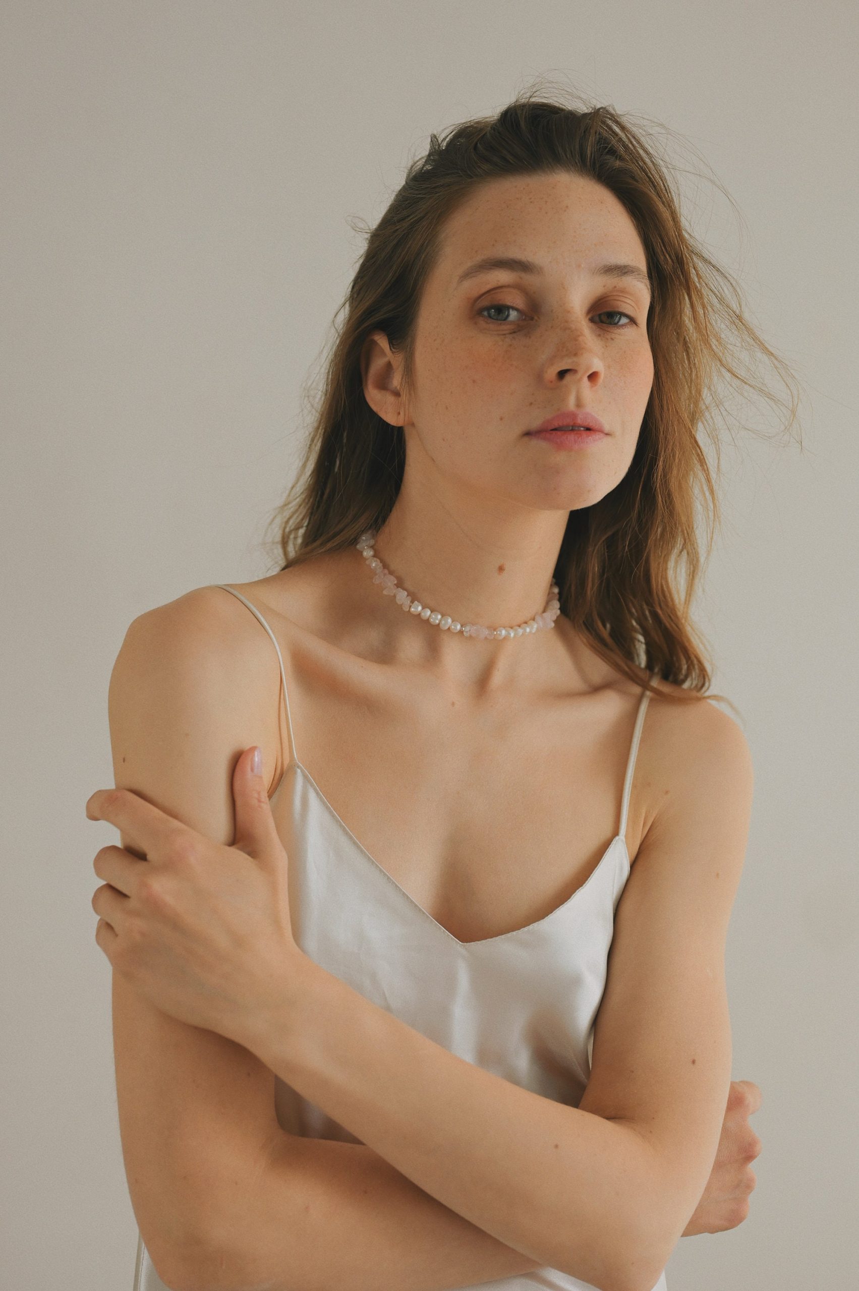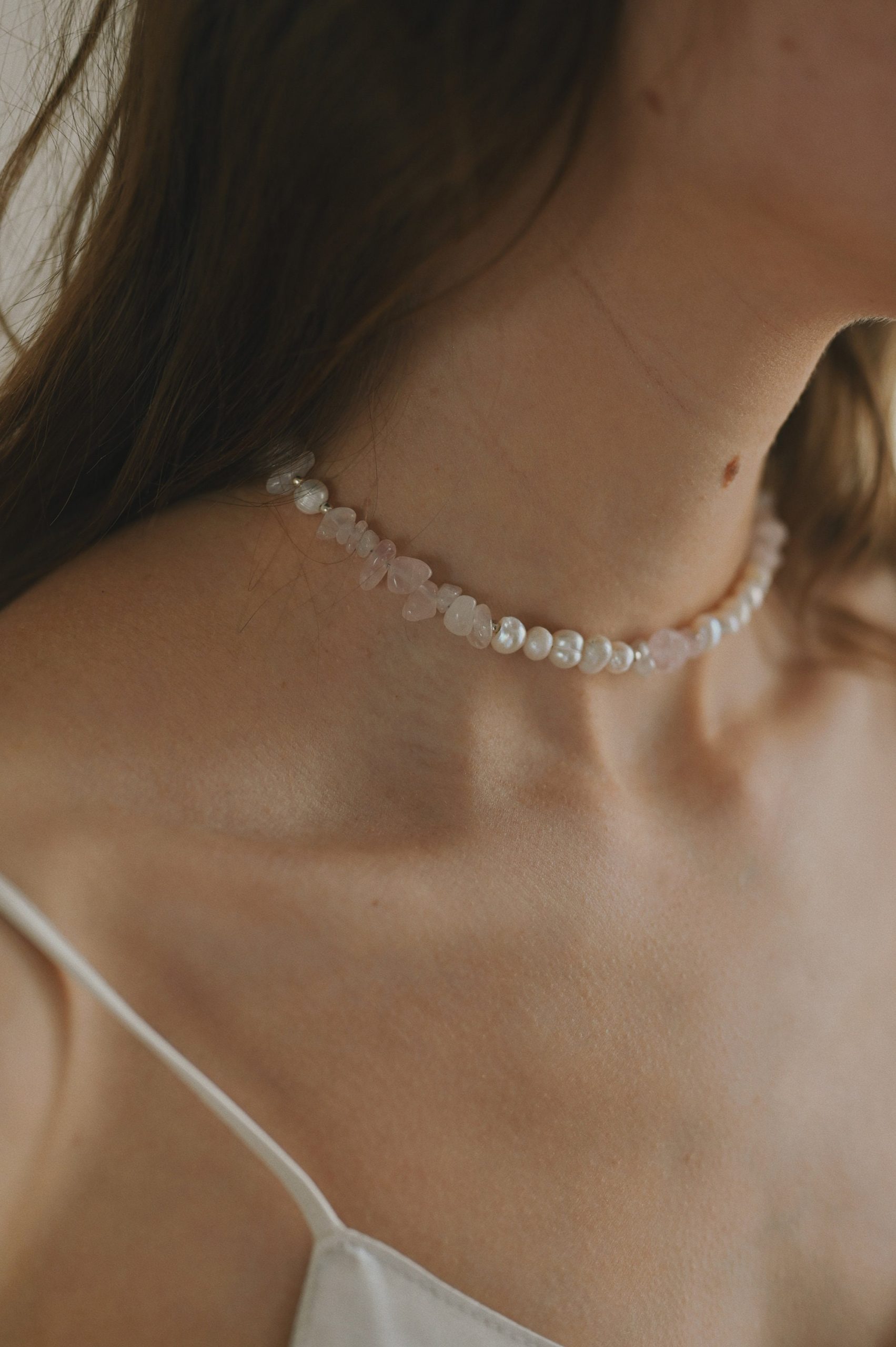 Handmade Freshwater Pearl Choker: Gemstone Beaded Necklace, Sterling Silver